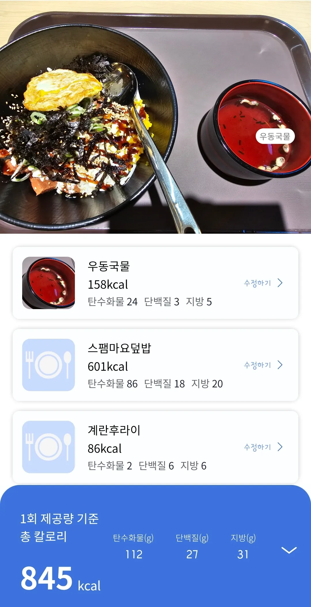 내가 먹은 음식 영양 성분 및 칼로리 분석